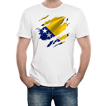 Reality Glitch Torn Bosnia Flag Mens T-shirt