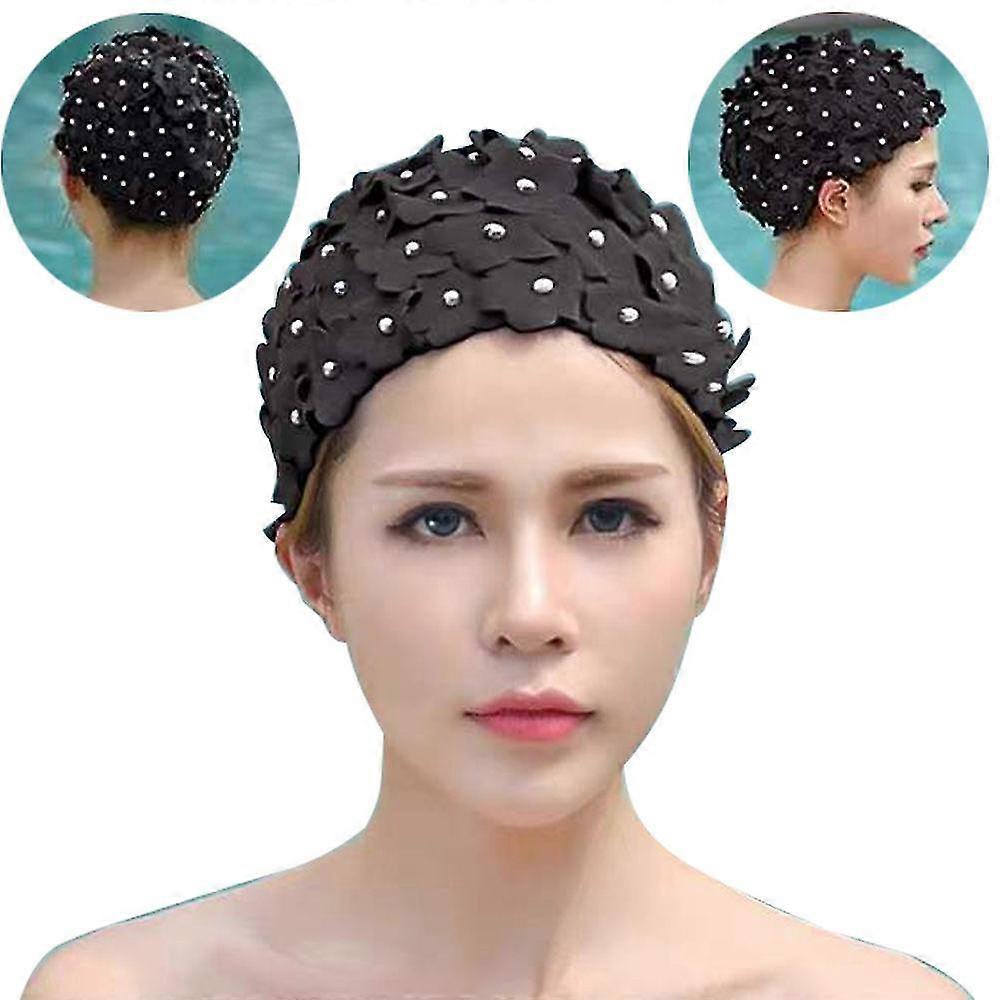 Vintage Floral Swim Cap Women Stylish Swimming Cap Shower Cap Nylon Spandex Flower Bathing Cap