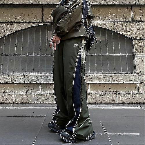 Vintage Cargo Pants Men Hip Hop Streetwear Striped Wide Leg Joggers Sweatpants Oversized 90s Retro Track Pantalones
