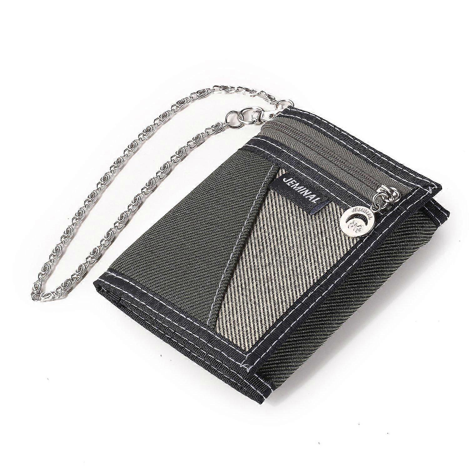 Vintage Men Tri-fold Wallet Casual Canvas Purse Cards Money Holder with Strap-Green