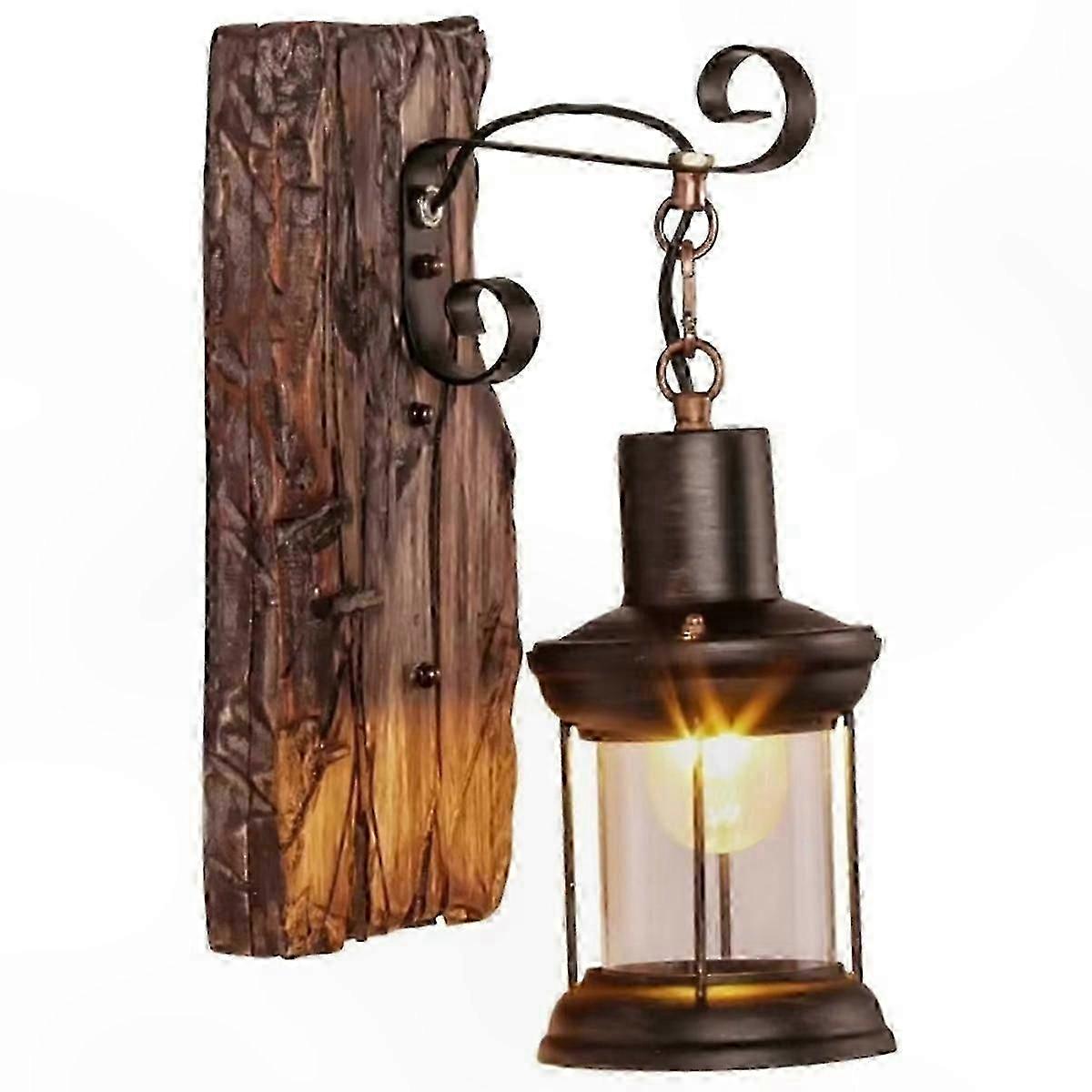 Vintage Industrial Wooden Wall Light Fixture Rustic Sconce for Home Decor