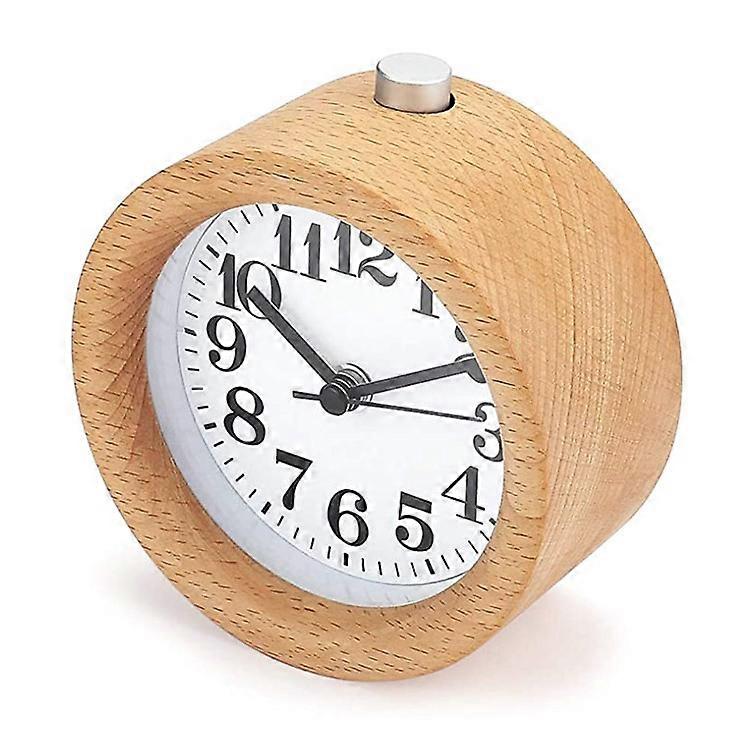 Vintage Classic Round Silent Table Desk Snooze Wooden Alarm Clock Night Light