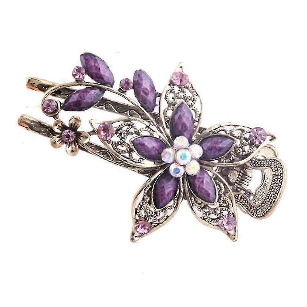 Vintage Womens Flower Crystal Hair Clips Barrettes Hair Accessories (Purple)