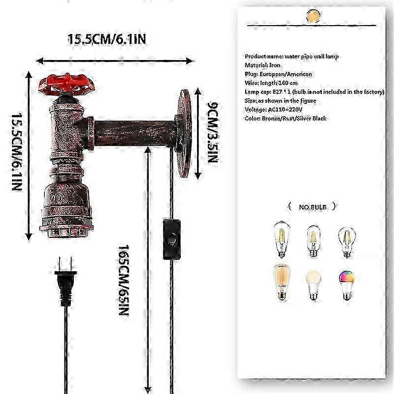 Vintage Water Pipe Wall Lamp Industrial Loft Sconce With Switch Plug For Kitchen Bedroom Bedside Wall Light Interior Lighting