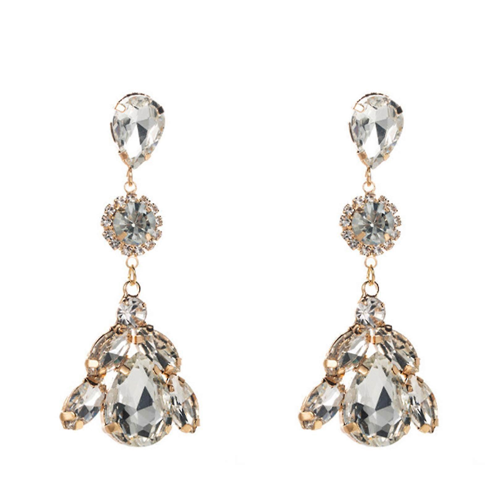 Vintage Crystals Pendant Earring All-match Long Tassel Statement Earring For Bride