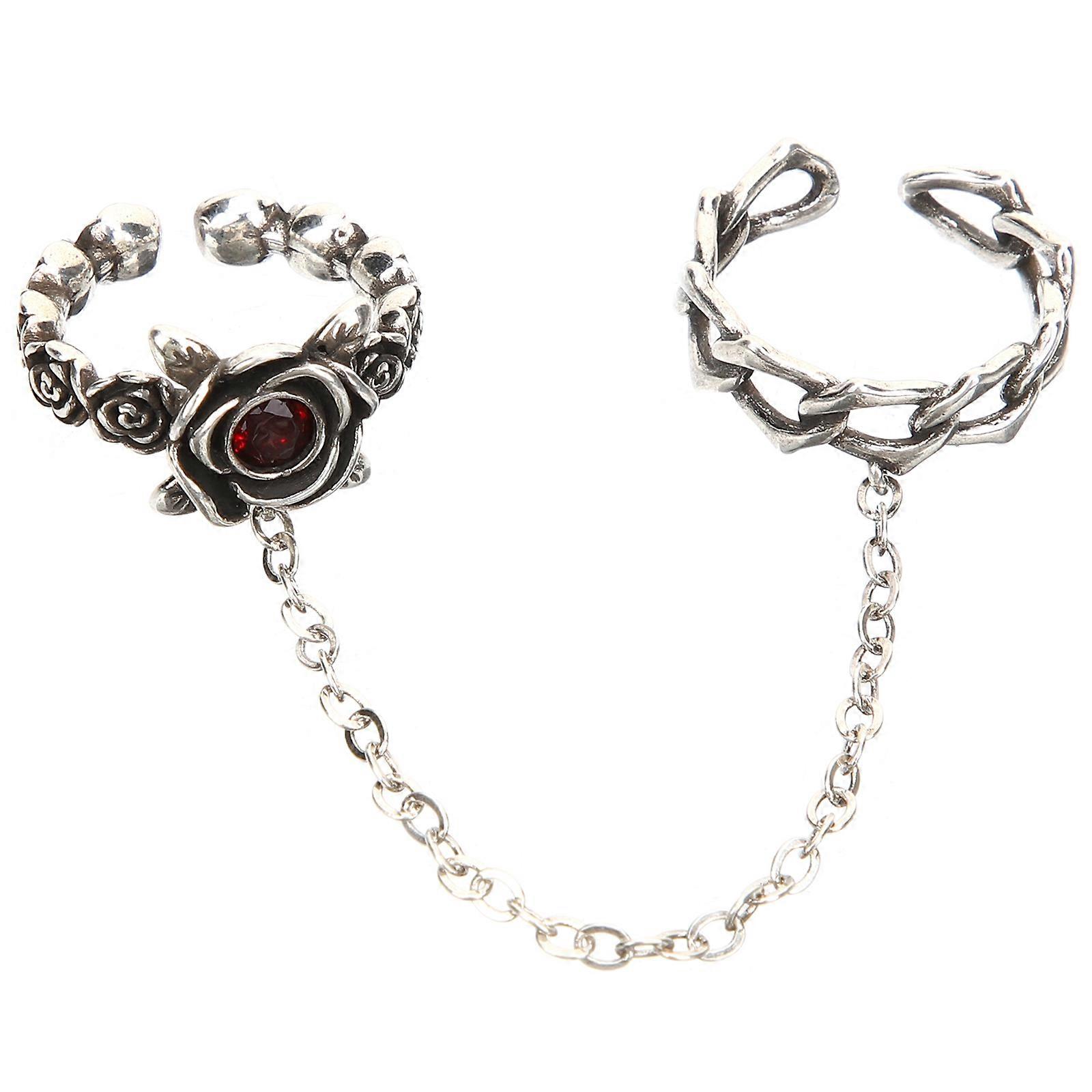 Vintage Rose Chain Finger Ring Set Decorative Jewelry for Women