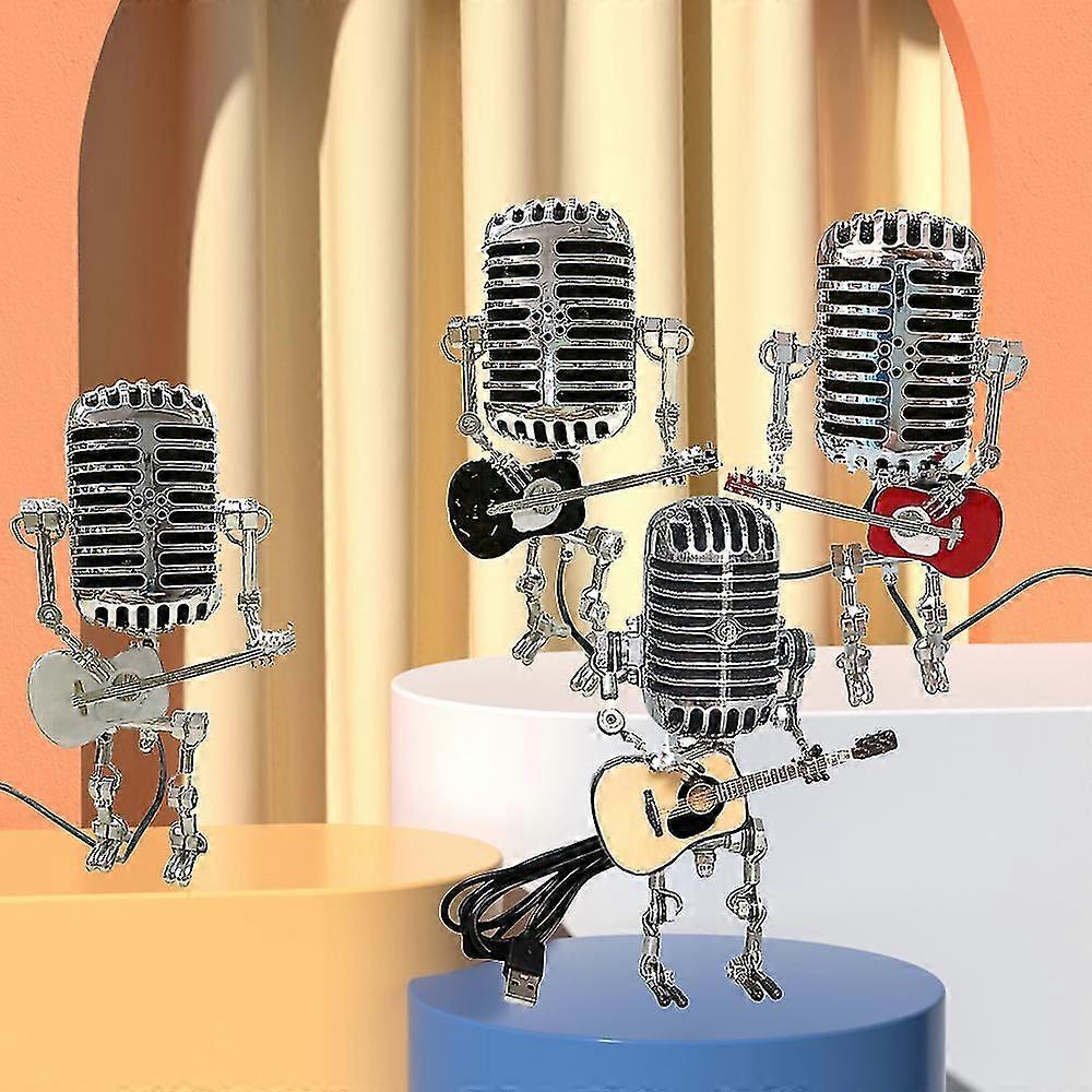 Vintage Microphone Robot Lamp Play Guitar Desk Led Lamp Light Vintage Miniatures