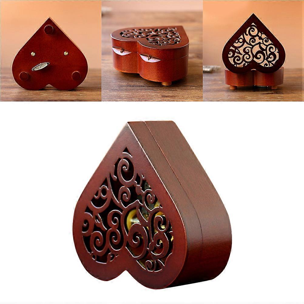 Vintage Style Heart Shaped Musical Box Wooden Carved Wind-Up Playing Room Decoration 1Pack