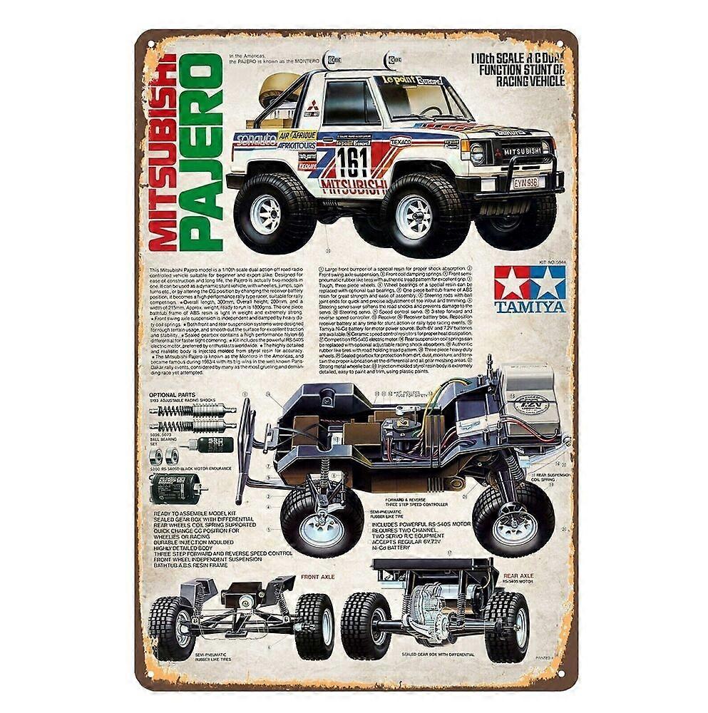 Vintage Rc Car Metal Sign Poster - Tamiya Mitsubishi Pajero - (8x12 inch) BPA13