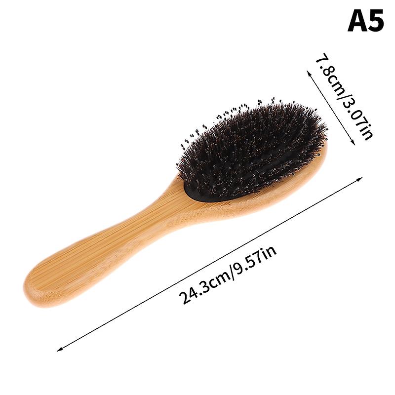 Natural Boar Bristle Oval Hair Brush Comb Head Scalp Massage Wood Handle