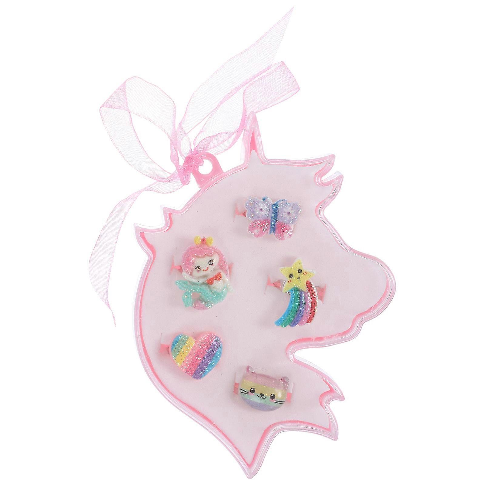 Children Rings For Girls Unicorn Shape Rings Holiday present Toddler Rings Assorted .3X3.1X1.0in 5Pcs