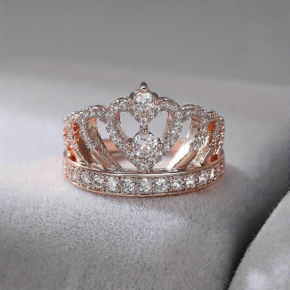 Luxury Crown Rings for Women Rose Gold Color Shiny Zircon Easy Match Queen Crown Ring Wedding Party Jewelry
