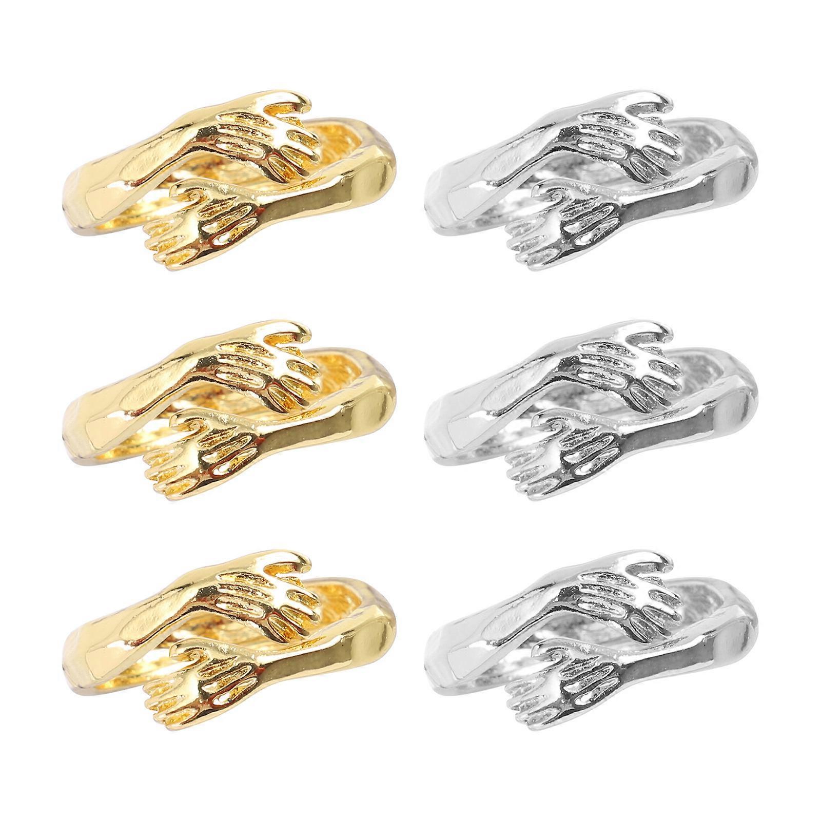 Cuddling Ring Couple Rings Stylish Design Everyday Use Silver Adjustable 6Pcs