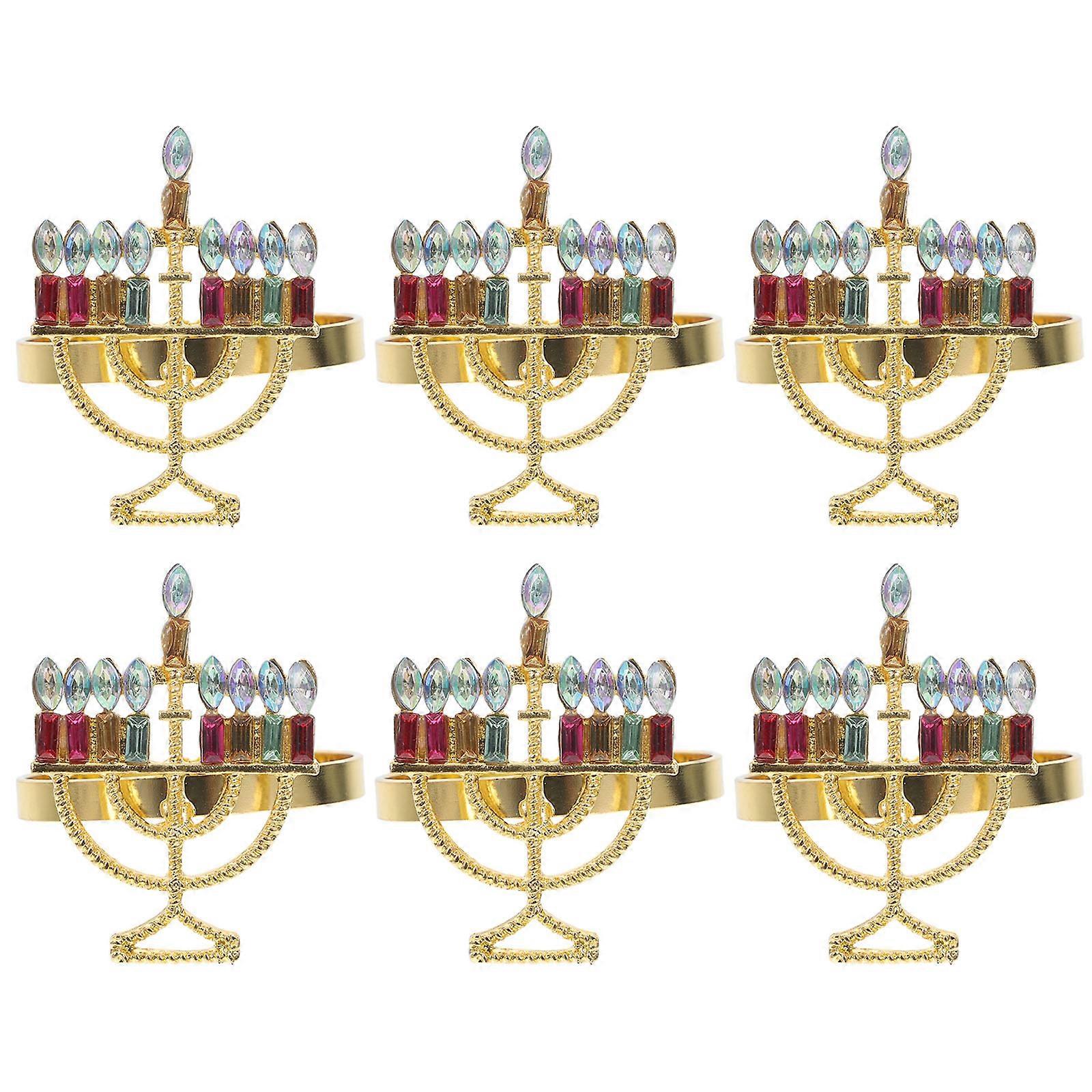Our Hanukkah candle napkin rings are designed to elevate your holiday dining decor. These metal napkin holders are adorned with rhinestones, making them a stunning addition to your table settings. Use them to secure your serviettes and impress your guests with a beautifully coordinated table that reflects of the season. Features -Color:Multi -Material:Zinc Alloy -Size:4.50X4.00X4.00cm/1.77X1.57X1.57in -suitable for festive gatherings: these hanukkah napkin rings are ideal for adding a festive touch to your holiday dining decor, making every meal feel special -Intricate rhinestone design: featuring beautiful rhinestone details, these napkin rings add a touch of and elegance to your table setting -Suitable for various occasions: whether it's a holiday dinner or a special gathering, these napkin rings are versatile enough to suit any event - material: crafted from materials, these napkin rings are designed to withstand regular use, ensuring they remain a staple in your holiday decor -Convenient and stylish: easy to use and stylish, these napkin rings make it simple to create a cohesive and attractive table setting Package list: 6 x Hanukkah napkin rings