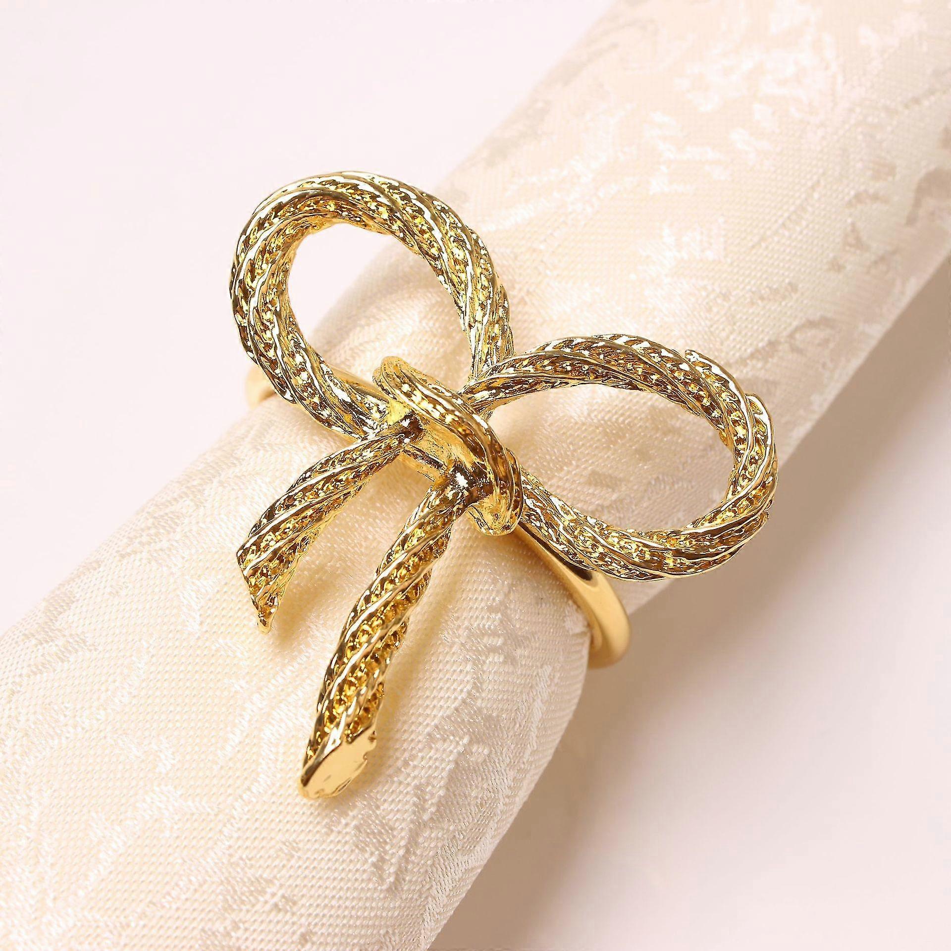 Napkin Rings- 12pcs Gold Bow Pearl Napkin Ring Holder, Metal Napkin Buckles For Wedding, Holiday, Christmas, Dinner Party Table Decor (butterfly)