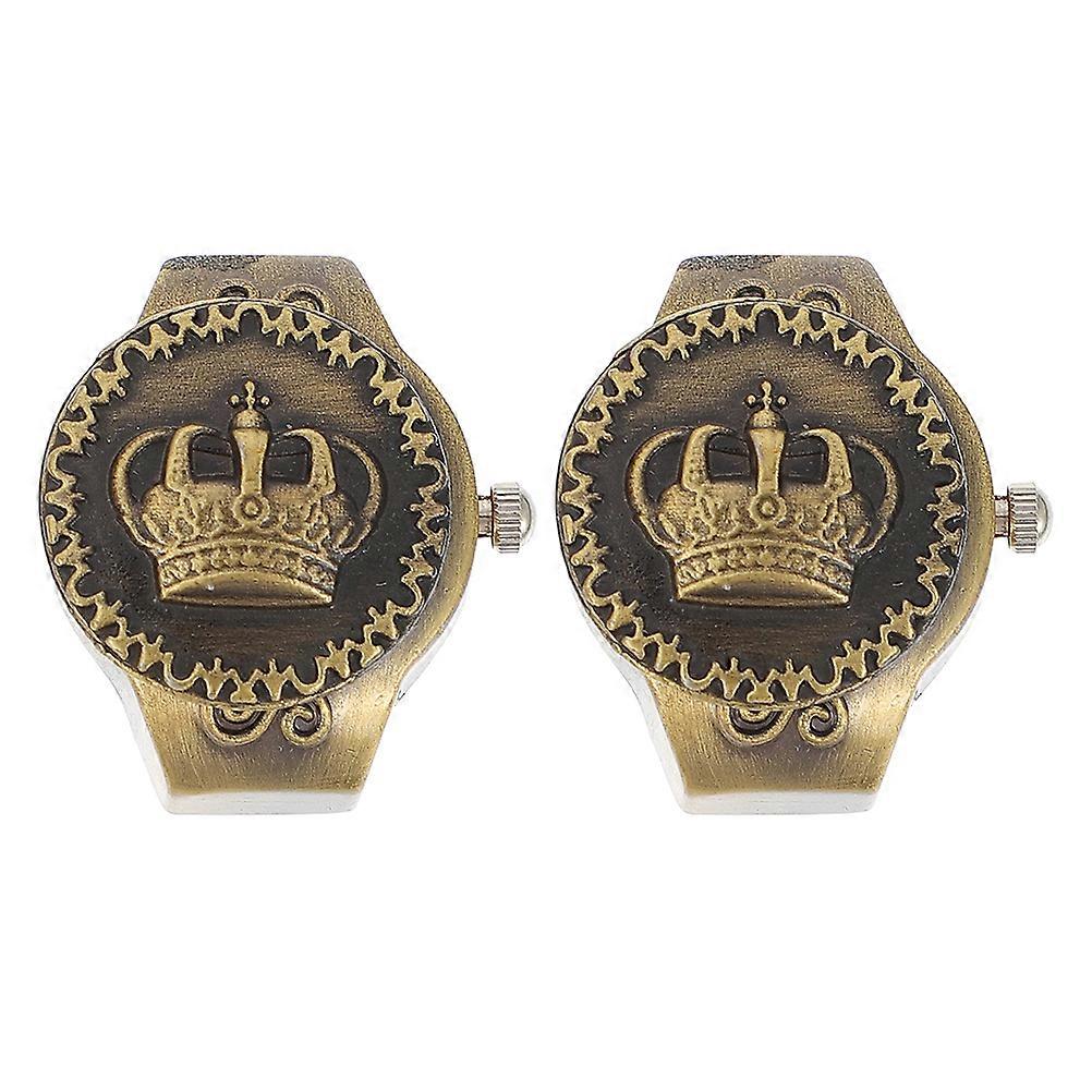 This is a delicate ring watch in adoption of zinc alloy materials. It has creative crown pattern to show your fashion. The retro style ring watch can effectively modify your fingers and make you look more delicate and attractive. Also it is a wonderful and impressive gift choice for your family member, friends or anyone on special festivals. Features - Material: Zinc Alloy. - Size: 3.00X3.00X2.50cm/ 1.18X1.18X0.98inch. - Zinc alloy material, this finger watch is sturdy and firm, can withstand . - The workmanship is fine, and the special clamshell design can show fashion. - Features crown pattern, can make your finger and yourself more charming. - Good texture, no burrs, safe to your finger, you can wear it with confidence. - Antique color, with good decoration, it is a very good ring watch, can be a wonderful and impressive gift choice. Package list: 2 x finger watches
