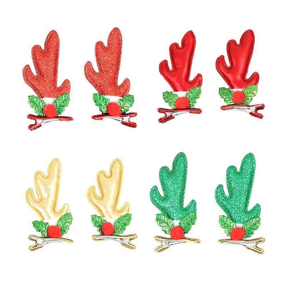 Children's Hairpins Festive Style 3D Antler Christmas Hair Accessories Red and Green 4 Pairs