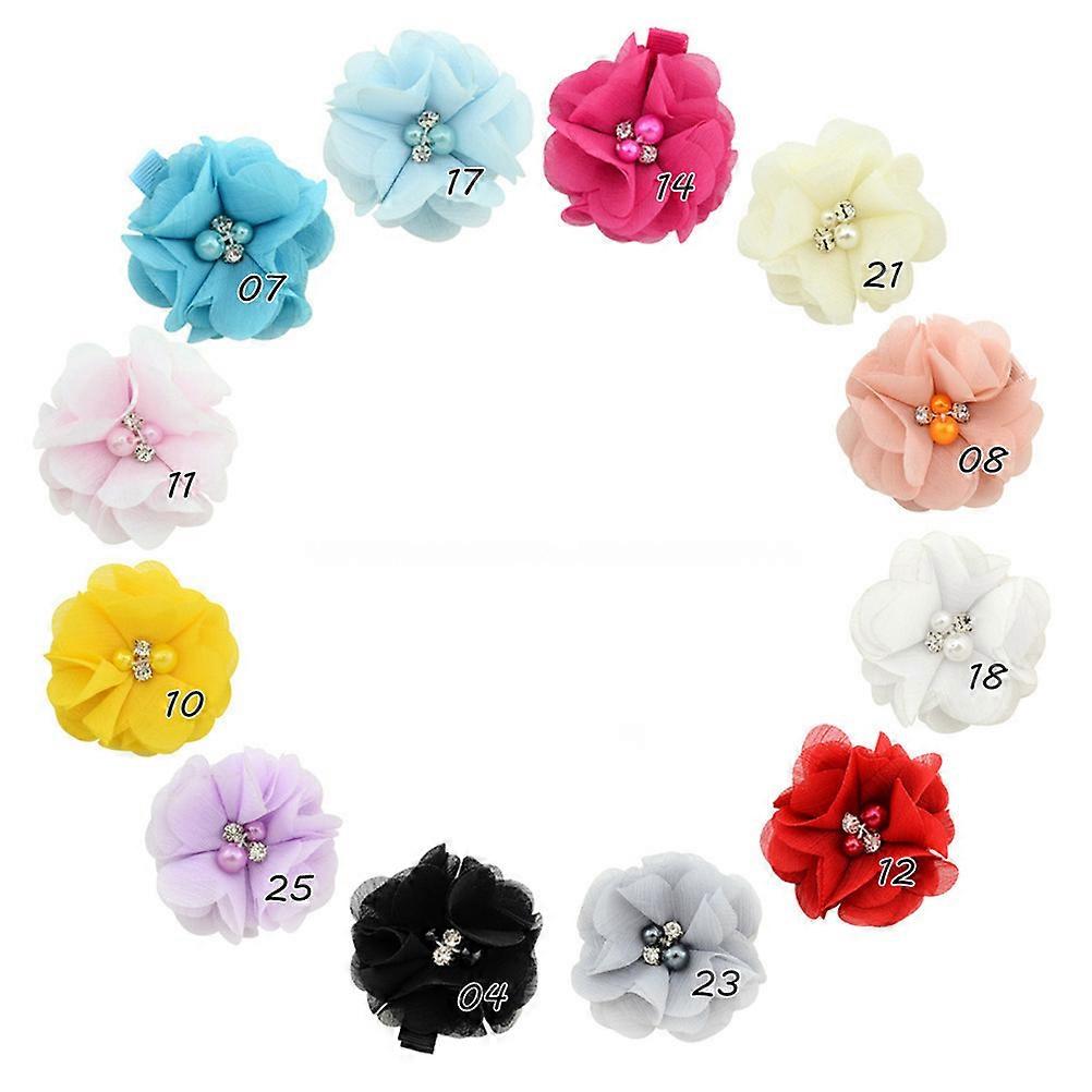 Hairpins And Accessories Diy Children Hair Clip Pearl Crystal Chiffon Flower Shaped Elegant Design For Wedding Party 12Pack
