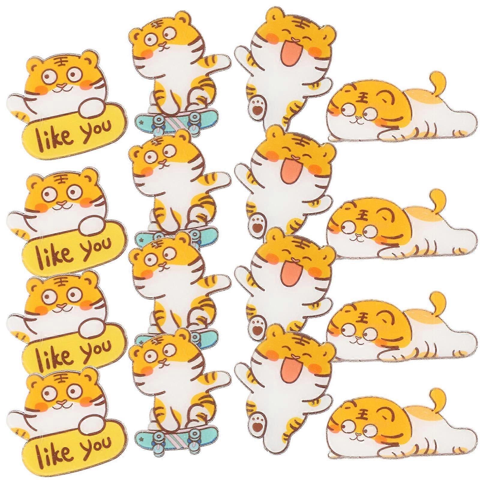 Acrylic Tiger Shaped Brooches 4.5X3CM Assorted Color Everyday Wear Ornaments 16Pcs