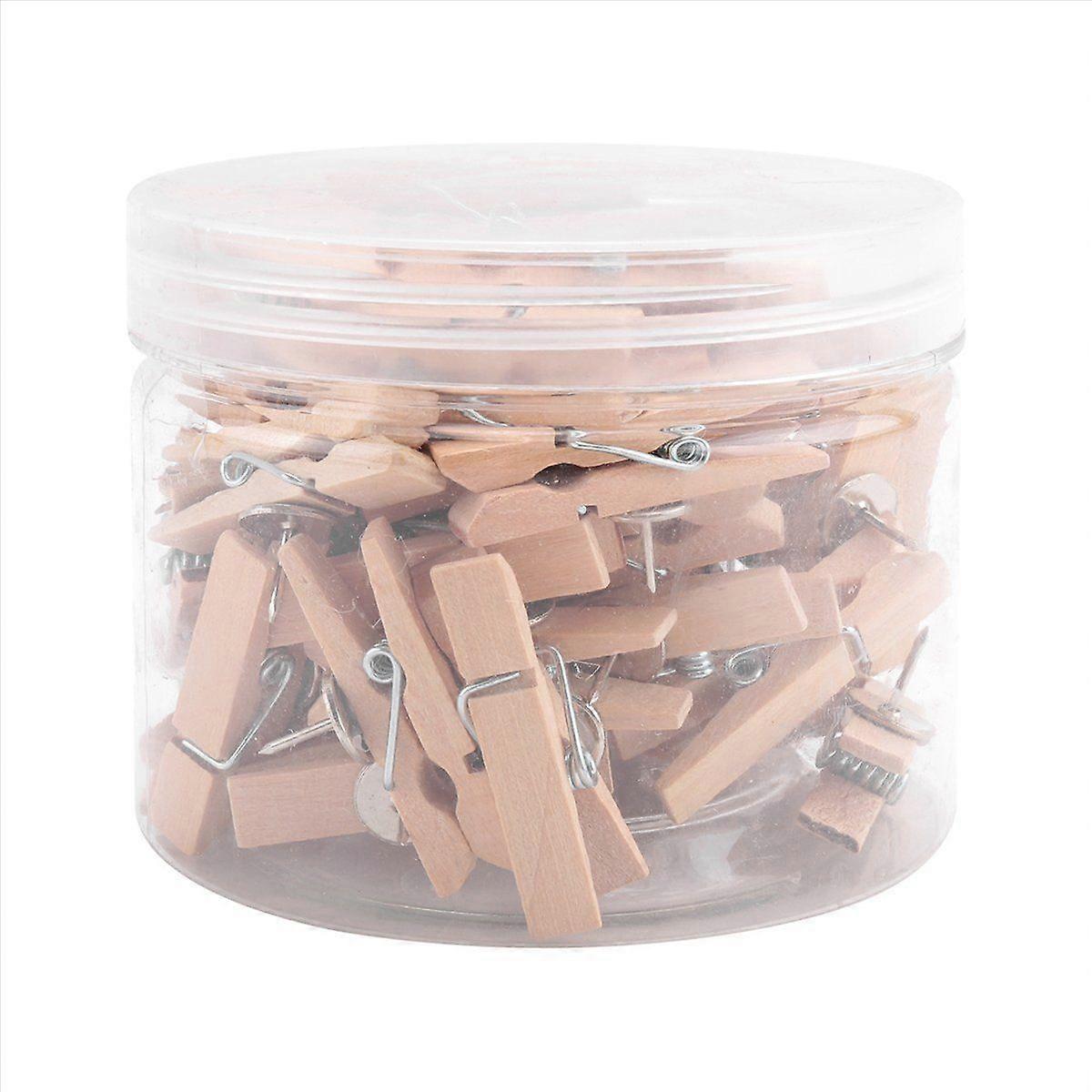 Push Pins With Wooden Clips 50Pcs Thumbtacks Clips Natural Color