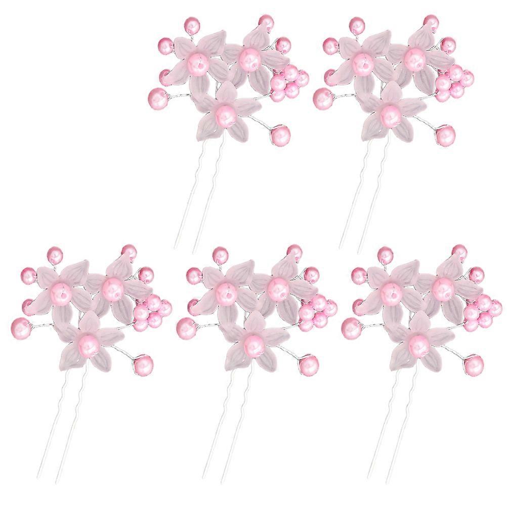 Pearl Flower Hairpins for Decor 5 Pieces Pink Simple Design with Beads for Wedding Party