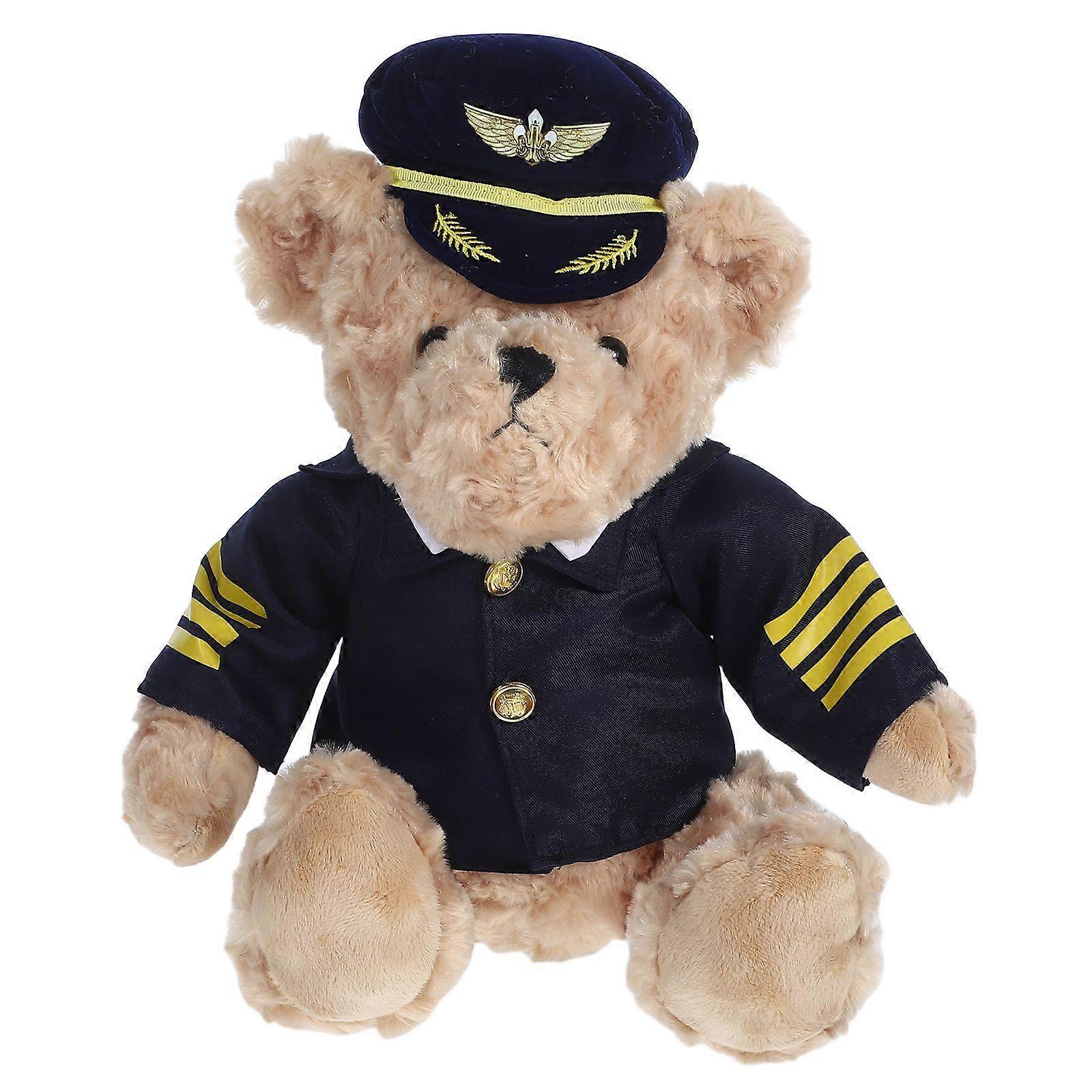 Soft Plush Bear with Captain Pilot Uniform Cute Pilot Bear Doll Airline Captain Stuffed Animal Toy for Birthday, Wedding, and Festive Presents