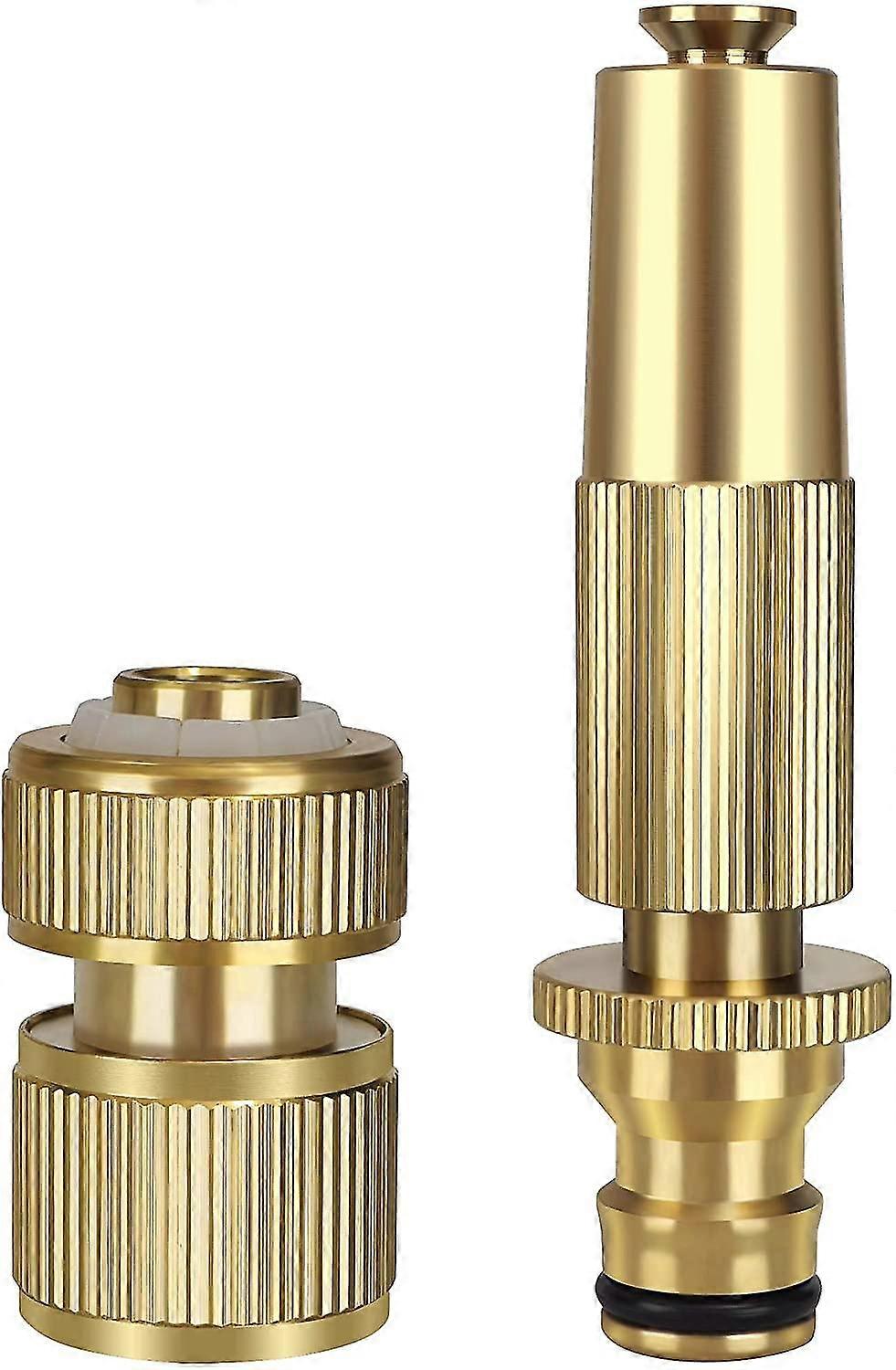 High Quality MaterialThe garden hand shower hose tail and faucet connector adapter are made of solid brass construction, with waterproof rubber ring, effectively prevent water leakage and rust. Compared to plastic nozzles, our pressure garden sprayer has a longer service life and is durable. Fully Functional The garden hose connector is easy to connect with a universal water hose 1/2 inch. Adjustable hose nozzle only needs to rotate the middle part of your body, so you can easily control the amount of water. The hose nozzle has strong water pressure, it can spray water or foam, and the sprayer can steer, disperse and shower mode. Easy to InstallThe high-pressure hose nozzle and hose connector are easy to connect and disconnect. Disassemble the garden hose connector into two parts, pass the hose through the shell, insert the hose and screw tight, connect the nozzle and you can use it, and disassembly is just pulling down the body, none other tools required, which saves a lot of time. The product includes Includes adjustable spray nozzle and a water hose connector, the garden hose connectors are for garden hose 1/2 inch. Widely used You can enjoy that these adjustable high pressure hose nozzles spray perfectly with any standard garden hose connector. This garden hand held shower hose nozzle is great for washing walkway, washing car, bathing pet, washing floor, washing glass and watering lawn garden.