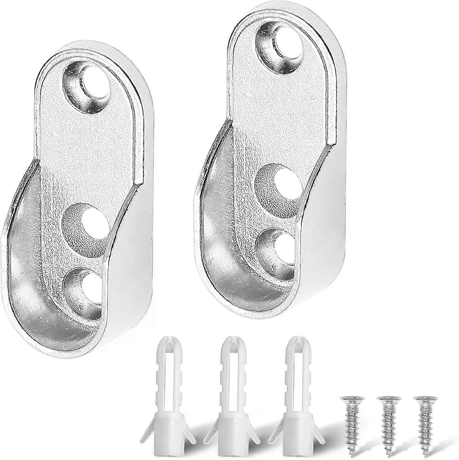 Oval Closet Rod End Supports, 2 Pack with 3 Mounting Holes, Wardrobe Bracket for 15x30mm Oval Rods