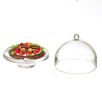 دمى البيت الفراولة تورتة على كعكة الوقوف قبة غطاء مصغرة ملحق الطعام