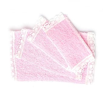 دمى البيت 4 الوردي الدانتيل المناشف ذات الحواف ملحق الحمام مصغرة