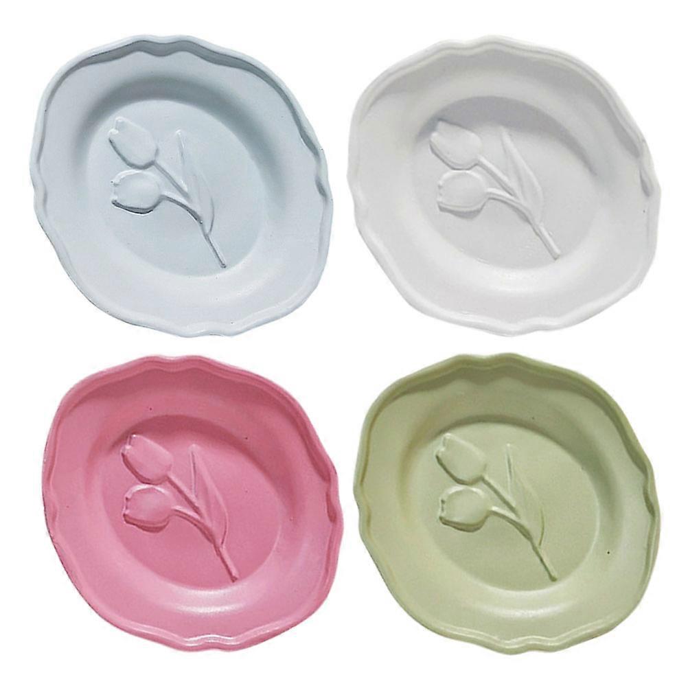 Dollhouse Decoration Miniature Plate Set 4Pcs Round Shape 3.20X2.80X0.40CM Ideal For Dollhouse Dining Table