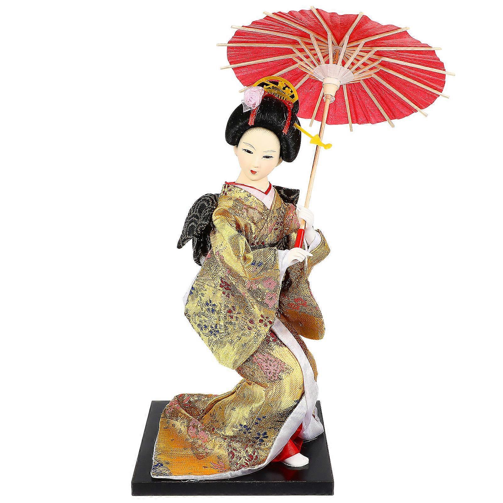 Japanese Geisha Doll Home Decoration Living Room Ornament Yellow 25x12.5x12.5cm 1Pack