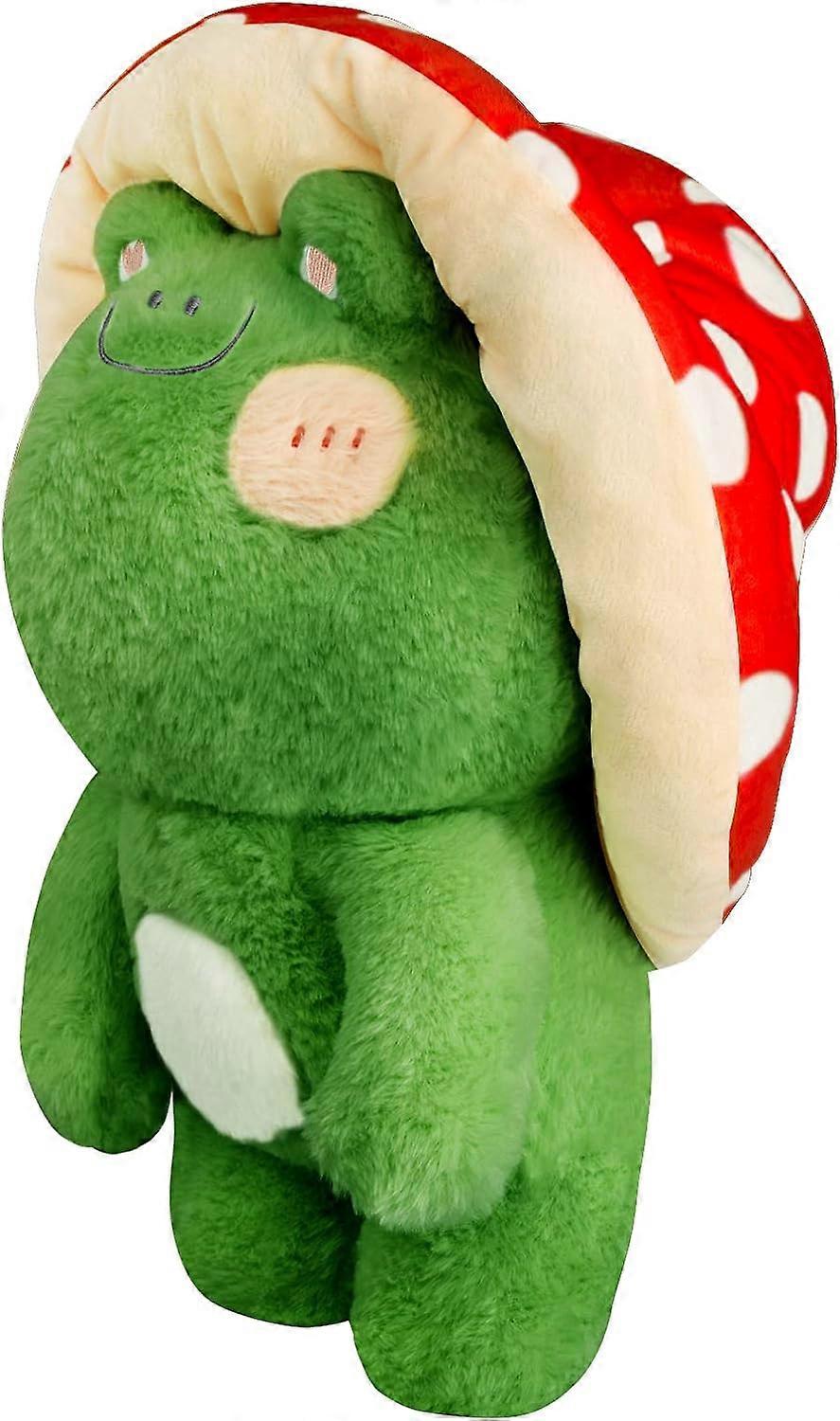 Cute Frog Plush Doll with Red Mushroom Hat Stuffed Animal Toy Green Crocodile Frog Plush Pillow for Girls(Dark Green Body Red Hat,42 cm/16.5 inch)