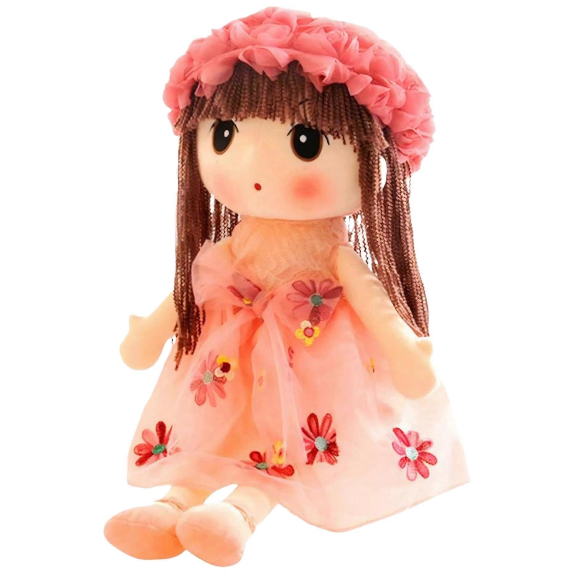 Cute 18inch plush doll with flower dress, hat, shoes, long hair, cottonfilled. Ref: 7337