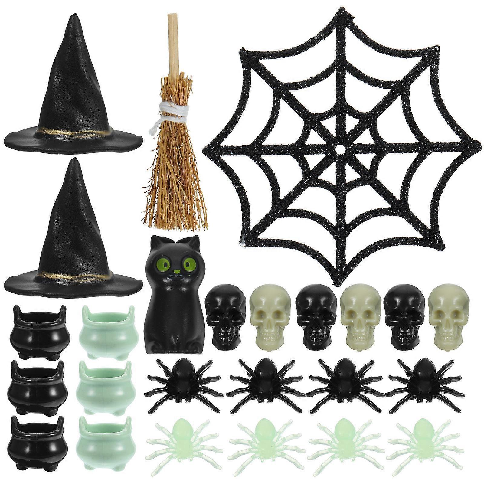Doll House Decoration Halloween Miniatures 5 Sets For Parties 8X8CM Plastic Broom And Witch Caps