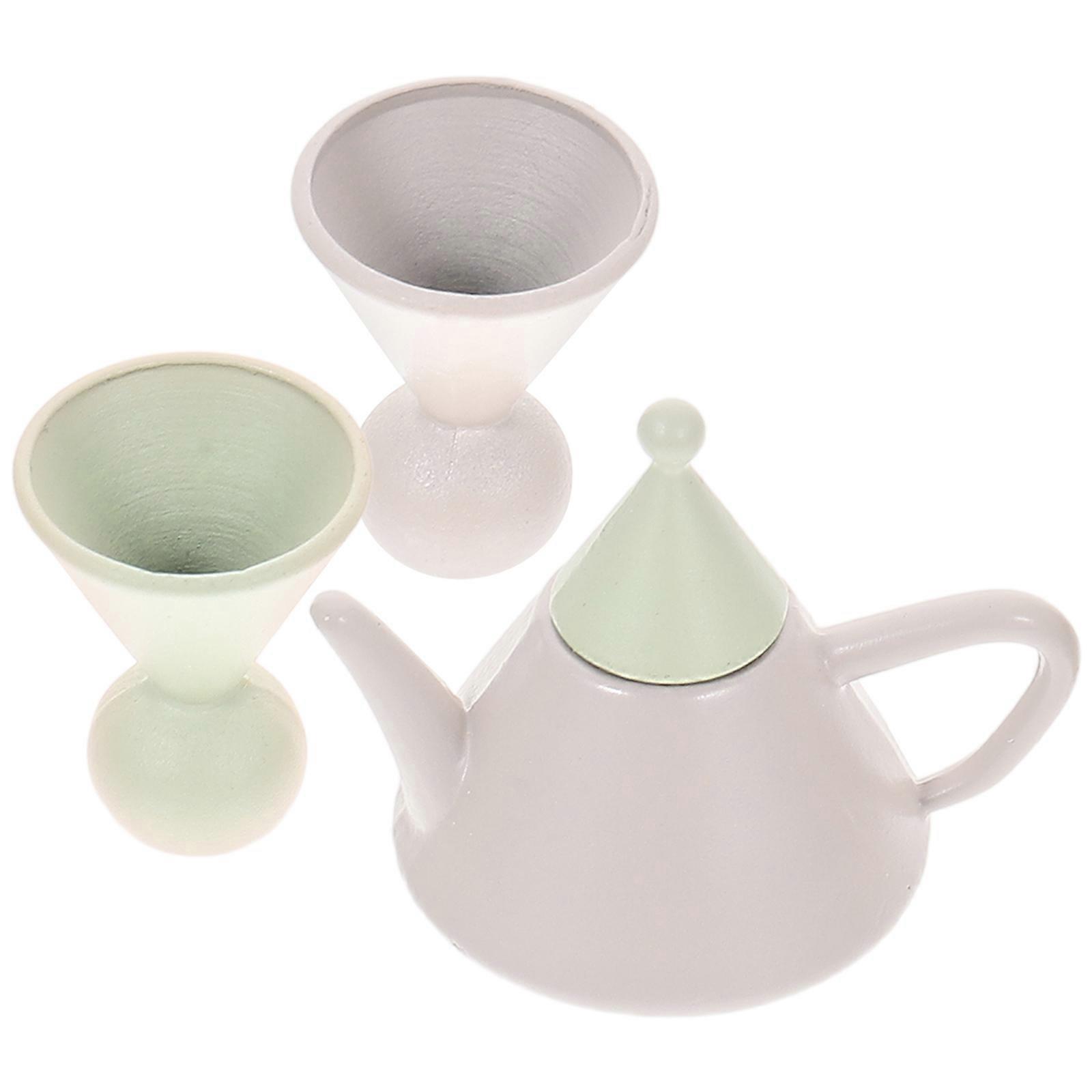 Doll House Tea Kettle Set Alloy Miniature Tea Pot and Cup Models 4Sets