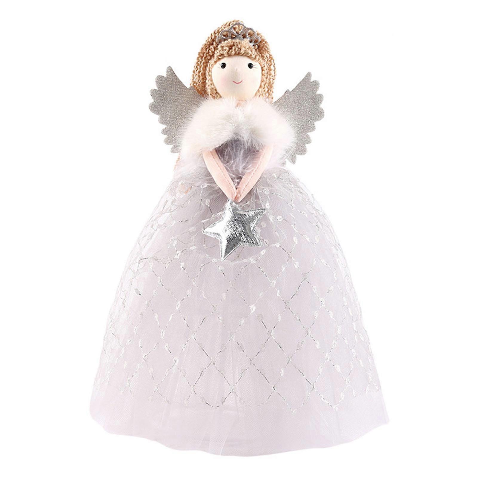 Christmas Angel Girl Doll with Crown Wings Star Design Xmas Little Fairy Doll Festive Table Ornament Christmas Tree Home Decor Girls Gift