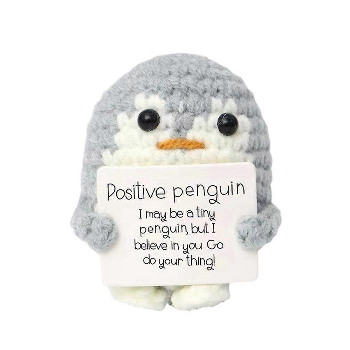 Penguin Crochet Doll with Positive Card - Cute Crochet Doll Gray