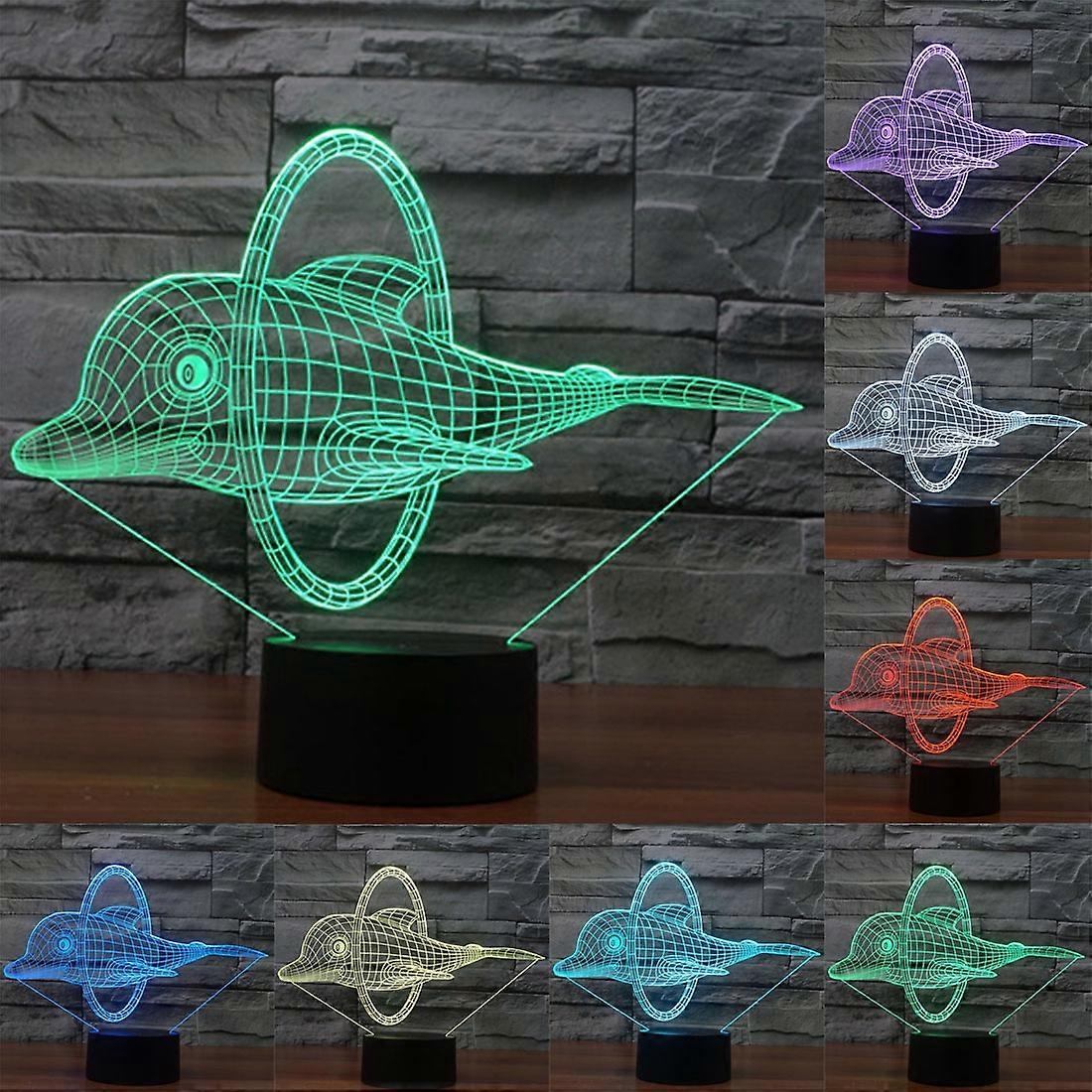 Dolphin Jump Style 3D Touch Switch Control LED Light , 7 Color Discoloration Creative Visual Stereo Lamp Desk Lamp Night Light