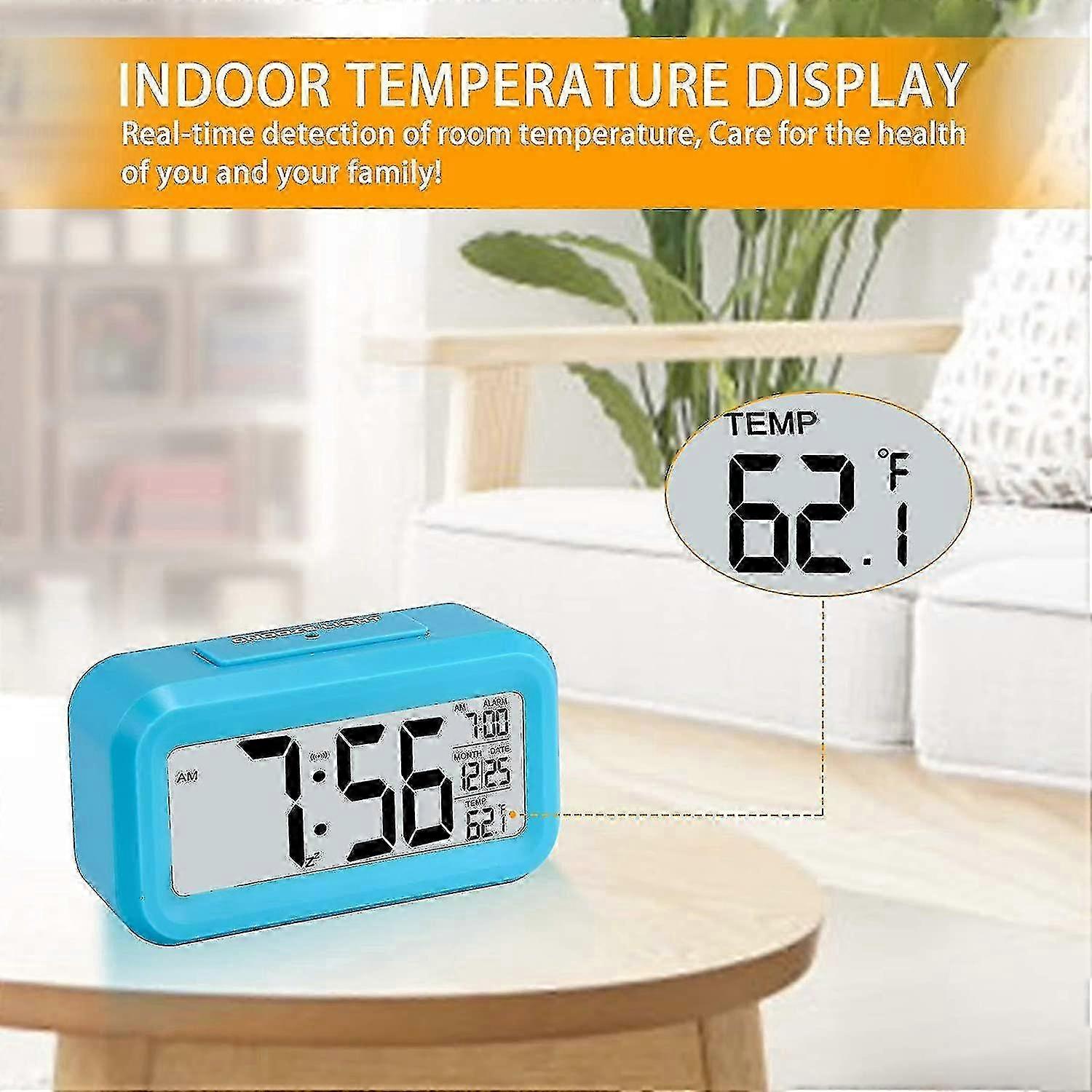 Digitaler Wecker, Batteriebetriebene Kleine Tischuhren, Mit Datum, Innentemperatur Blau