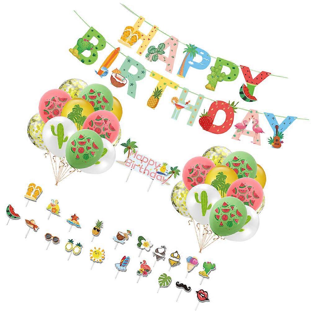 Tropical Party Decorations Hawaii Cake Topper Banner Balloons Round Shape Latex Material Birthday Party Supplies 25x20x2cm