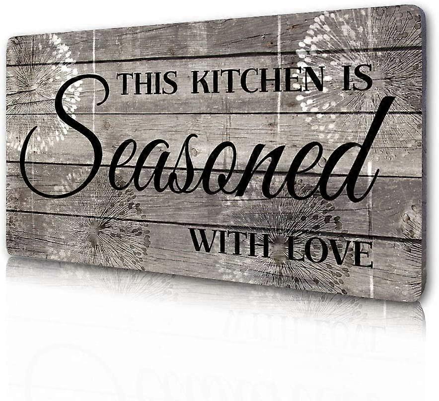 Rustic Kitchen Decorations Wall Art, Farmhouse Kitchen Decor-This Kitchen is Seasoned with Love-Printed Wood Plaque Kitchen Signs Wall Decor 16" x 8"