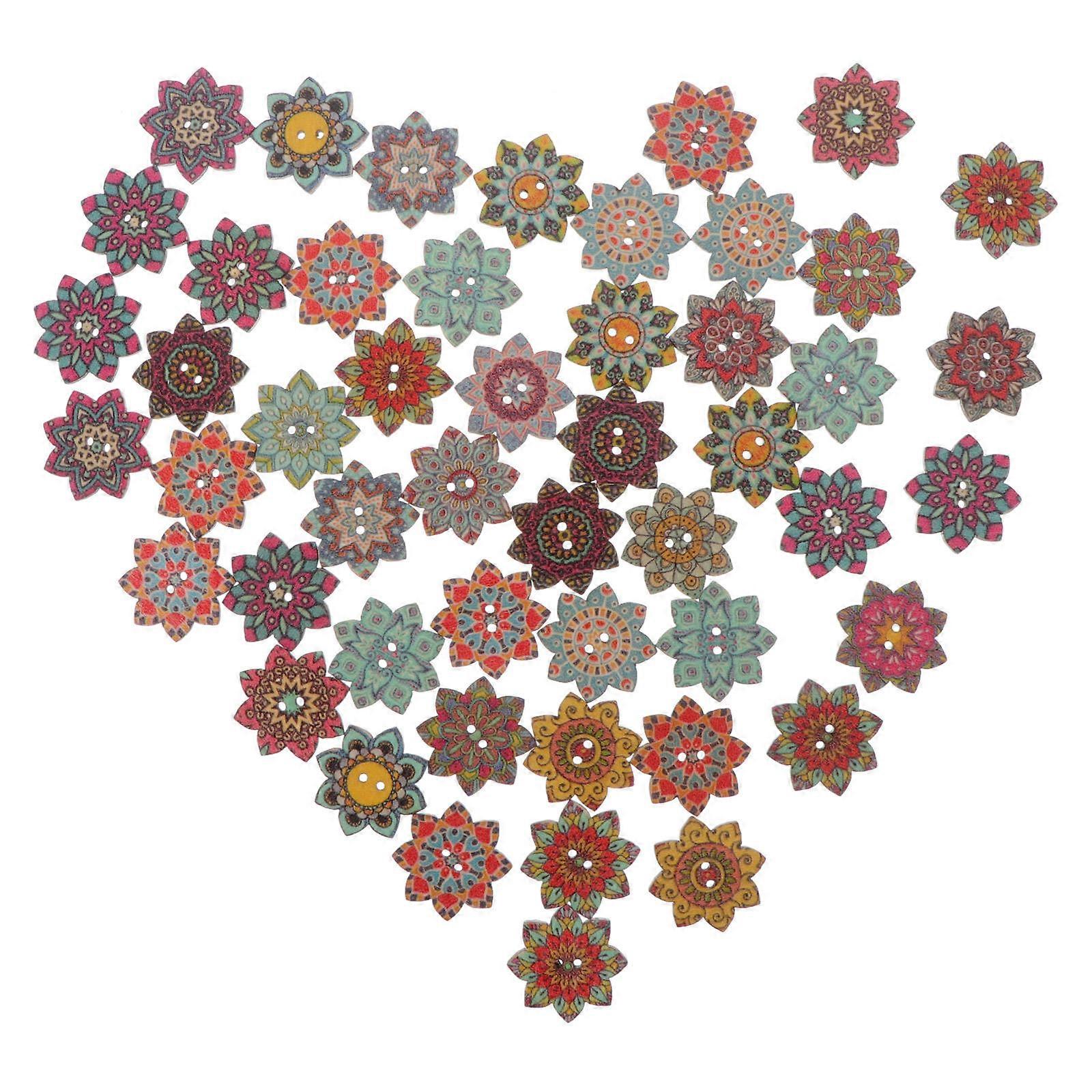 Wooden Decors Flower Shaped Buttons Diy Activities Handicraft Enthusiasts Square Shape 0.94X0.94In 100Pcs