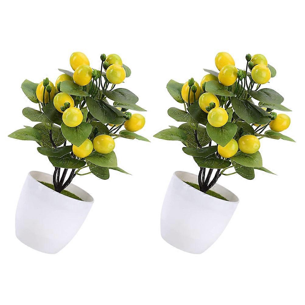 Fake Lemon Tree Bonsai Decor for Home Office – Simulated Potted Plant with Pot, Realistic Look, Vibrant Color, Desk Decoration for Refreshing