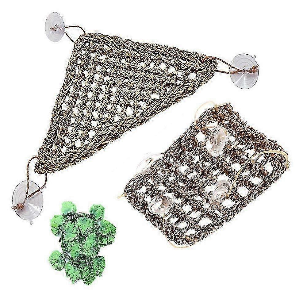 Reptile Climbing Decor: 2 Pack Bearded Dragon Hammock, Natural Seagrass Fabric for Lizards