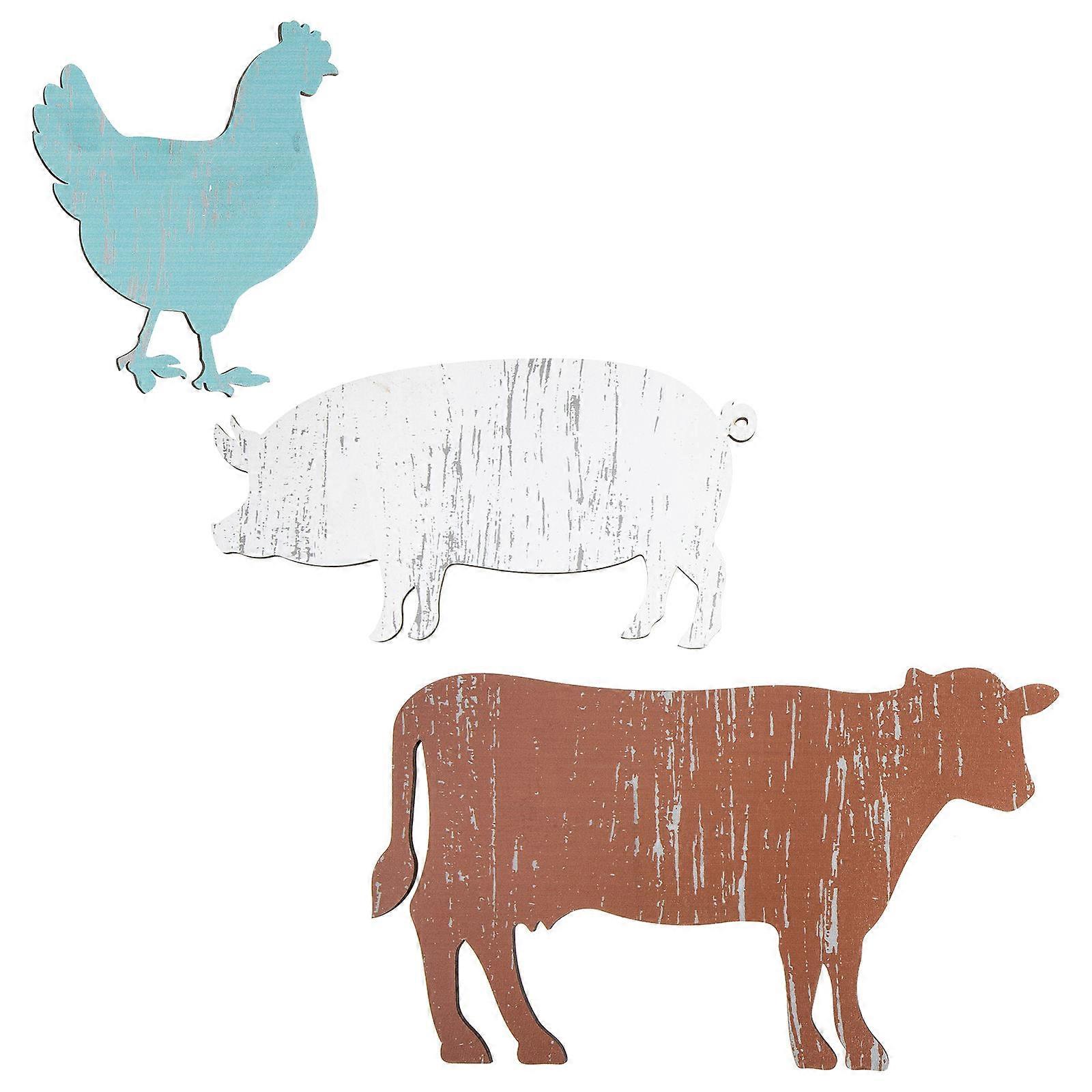 Rustic Farmhouse Wooden Animal Wall Decor with Hanging Hooks for Indoor Outdoor Home Bedroom Porch Decoration and Photography Prop