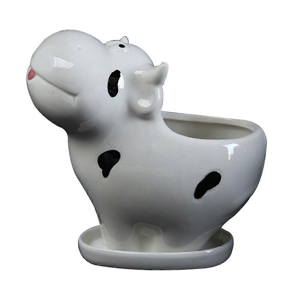 Decorative Indoor Flower Pot Ceramic Cow Shape Home Office Decoration White 13.2*14cm 1Pc