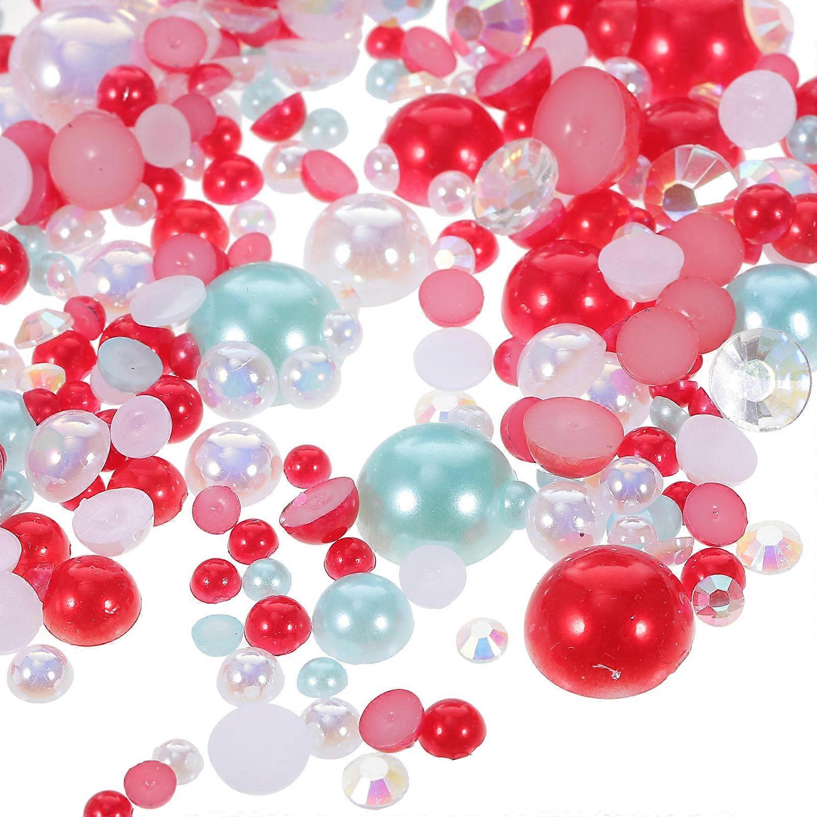 DIY Nail Art Decoration with Plastic Resin Pearl Decals for Easy Manicure Use at Home Red Color