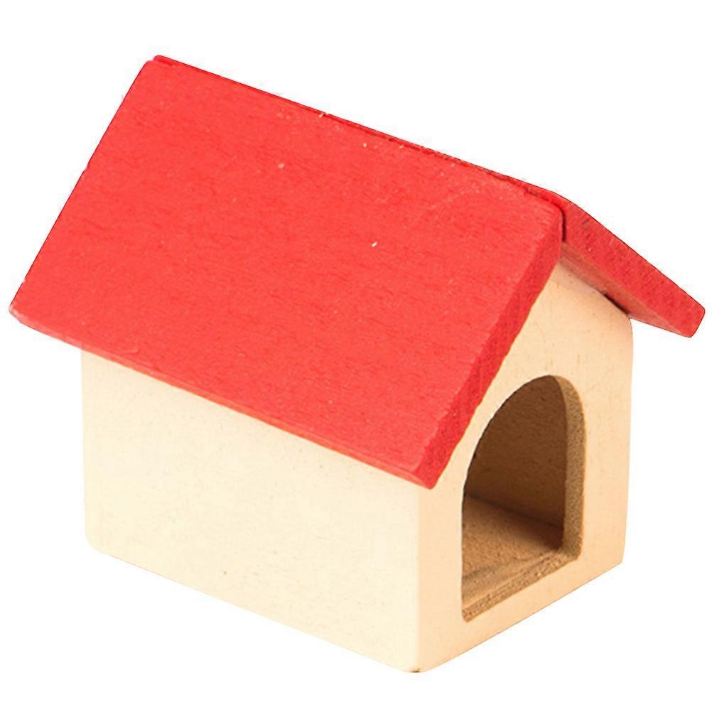Red Miniature Kennel House Decor for Fish Tank Made of Wood with Details 3.5 x 2.8 x 2.2 inches