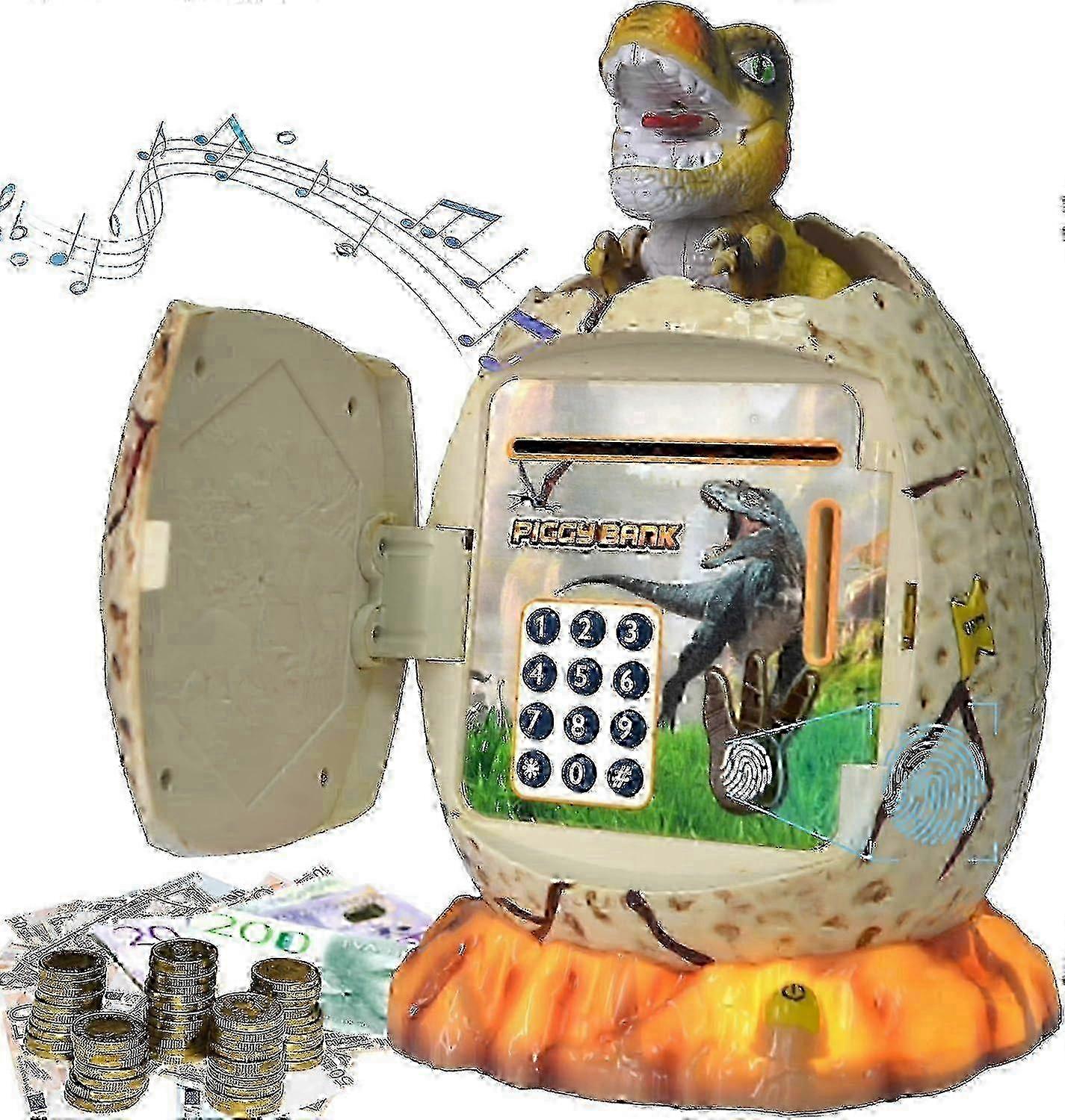 Dinosaur Piggy Bank, Dino Egg ATM Cash Coin Saving Box, Electronic Piggy Bank with Password Fingerprint Unlocking for Boys Grils Gifts